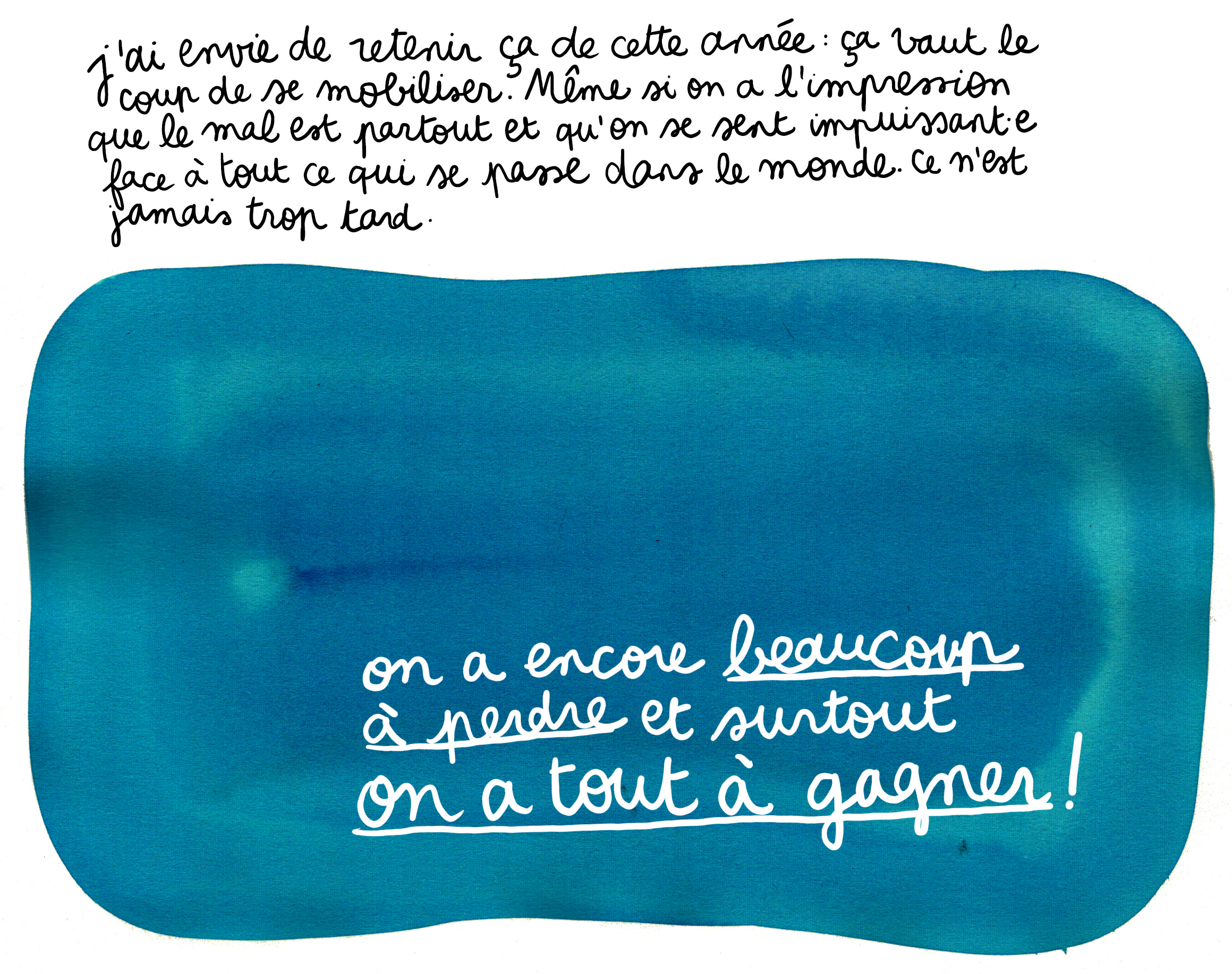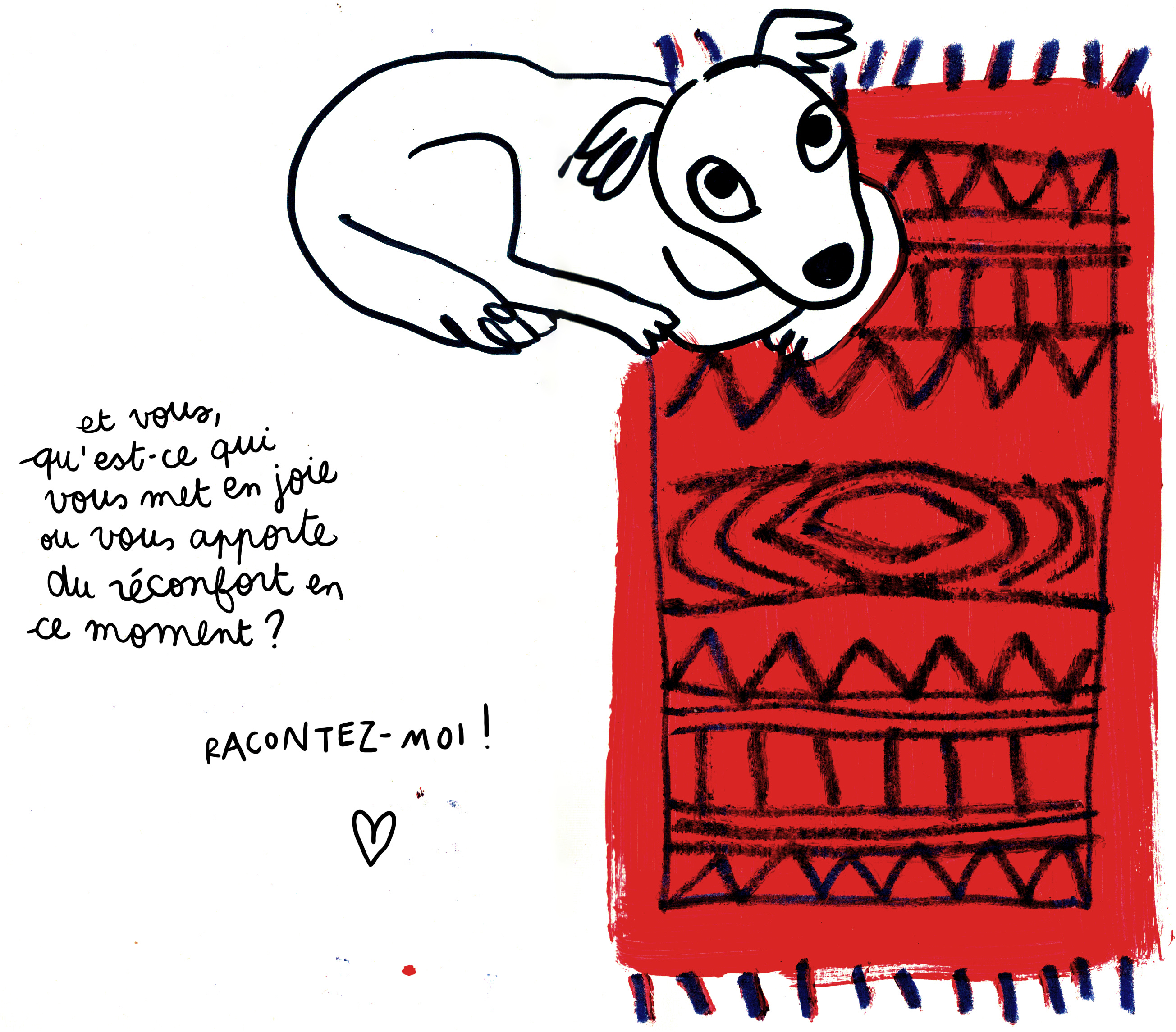 Alors aujourd’hui, je vais vous parler de trucs pas déprimants (je crois) et EN PLUS je vais le faire avec plein de dessins et de couleurs. Histoire de s’aérer après ma lettre du mois dernier (que je vous encourage QUAND MÊME à lire parce que vraiment c’est important et on peut tous ensemble agir sur ce sujet).