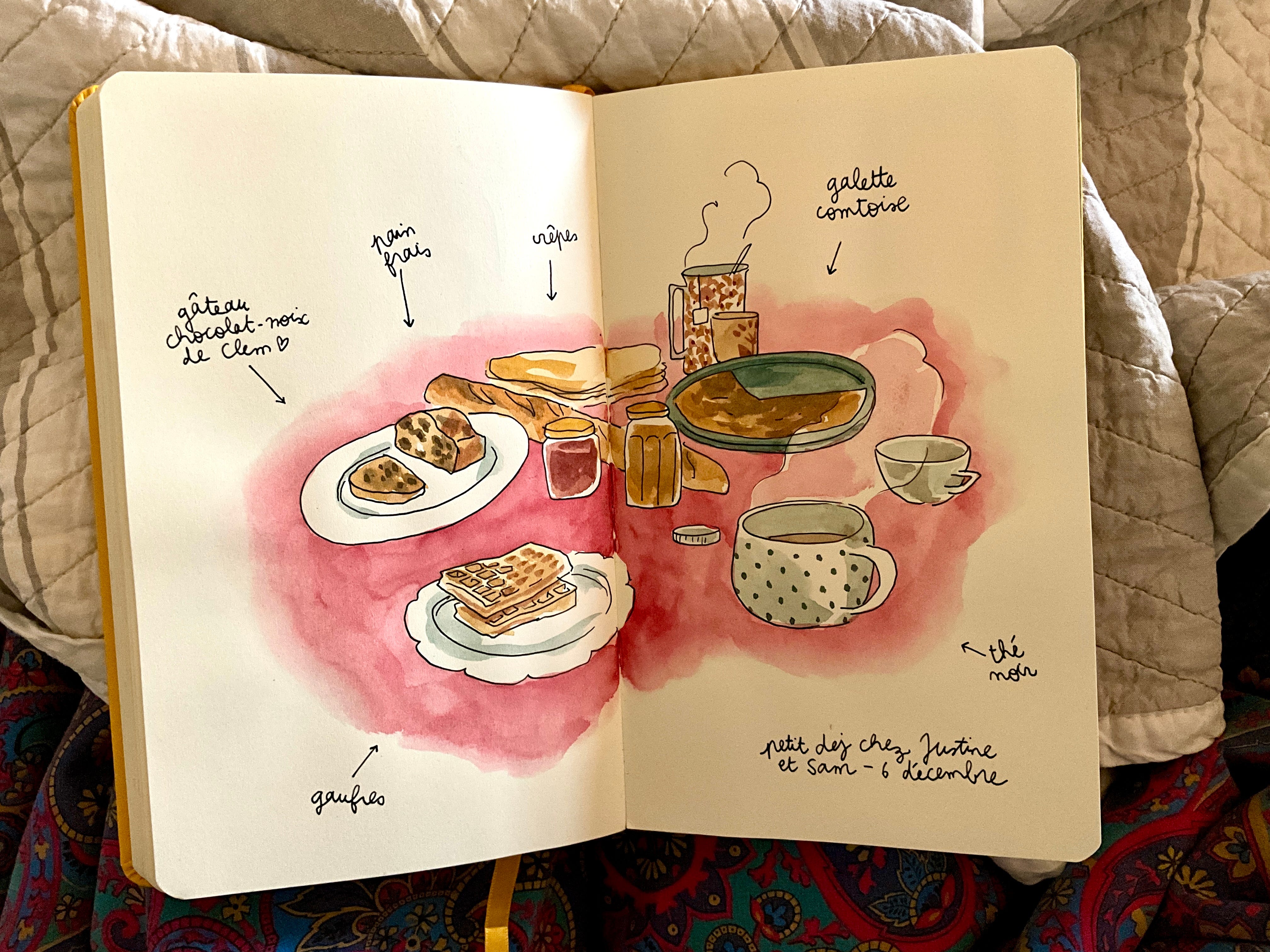 Mon amoureux a séché mes larmes, m’a fait couler un bain puis m’a emmenée marcher dans la forêt en mangeant un énorme éclair au chocolat ; mon amie C. m’a cuisiné tout un repas avec un gâteau noix-chocolat juste divin ; on s’est invité·es chez J. et S. pour un petit déjeuner gargantuesque ; A. et P. m’ont accueillie pour un goûter et un bain nordique sous les étoiles.