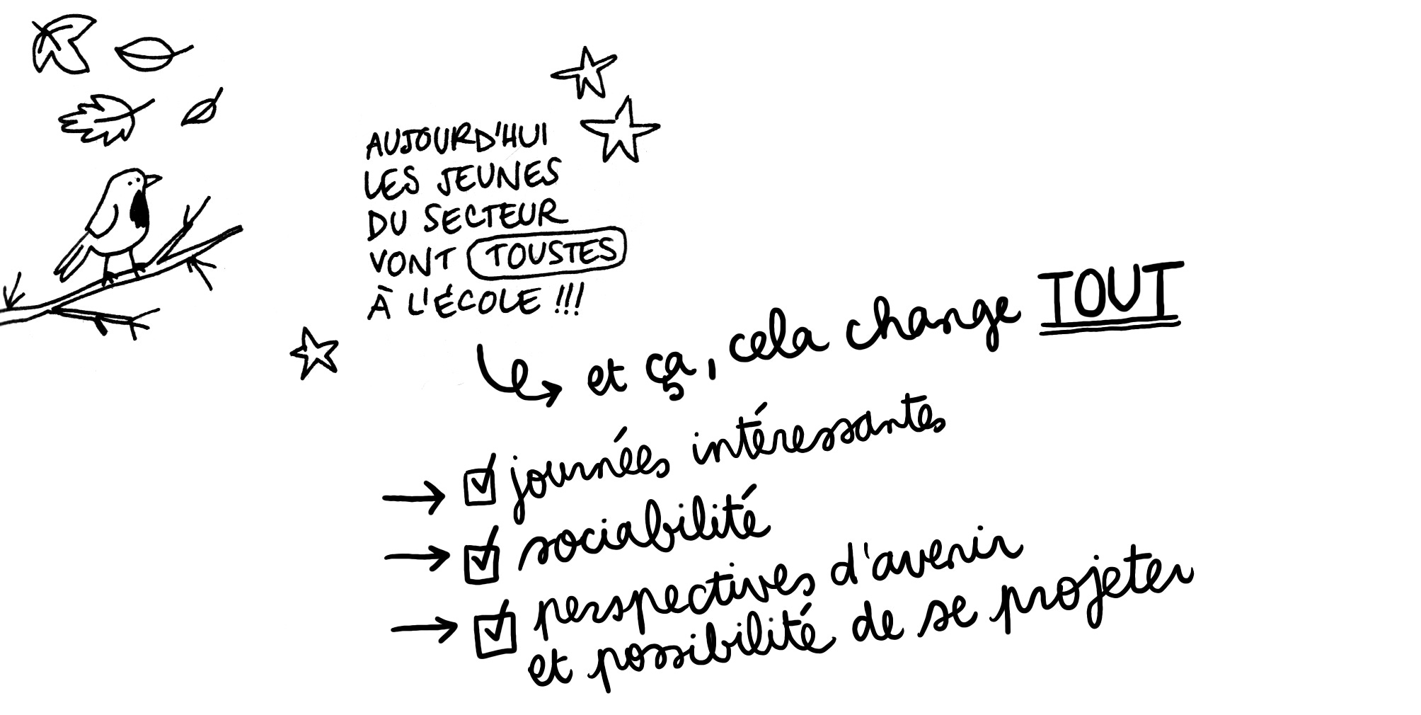 Cette scolarisation, si importante dans son parcours, elle n’est pas tombée du ciel. Ce sont les associations locales qui ont traîné le rectorat en justice pour exiger que soit respecté le droit à la scolarisation. Et ça a marché. Un rapport de force s’est construit, et miraculeusement des places sont apparues dans tout un tas de formations. Sauf qu’il n’y a pas de miracle : il n’y a que du travail et de la détermination.