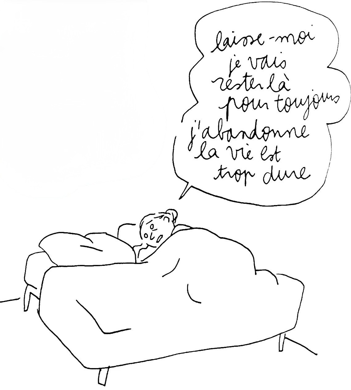 Et vous savez quoi ? Ça peut aussi ne pas marcher du tout. Moins de 24h après avoir écrit cette première partie de lettre, j’étais roulée en boule au fond de mon lit, en larmes, en proie à une panique déraisonnable, quasiment persuadée que je n’allais jamais réussir à sortir de mon lit pour me remettre à travailler.